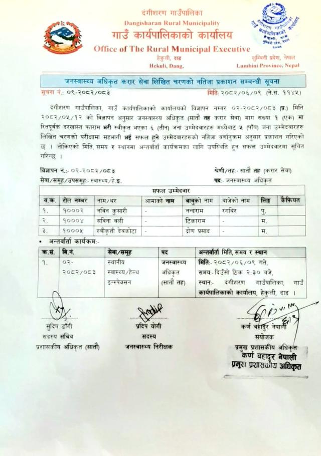 जनस्वास्थ्य अधिकृत करार सेवा लिखित चरणको नतिजा प्रकाशन सम्बन्धी सूचना ।