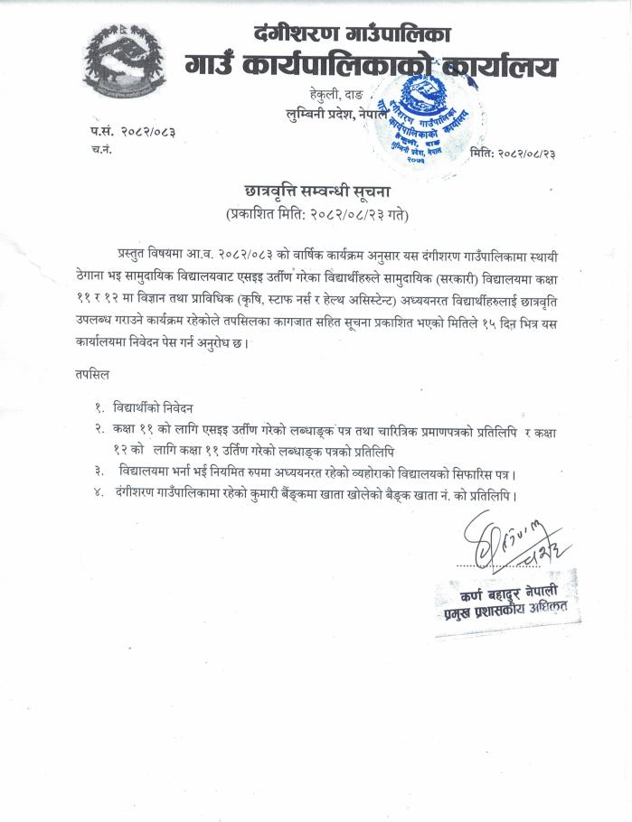 छात्रवृत्ती उपलब्ध गराउने कार्यक्रम बारे सूचना ।